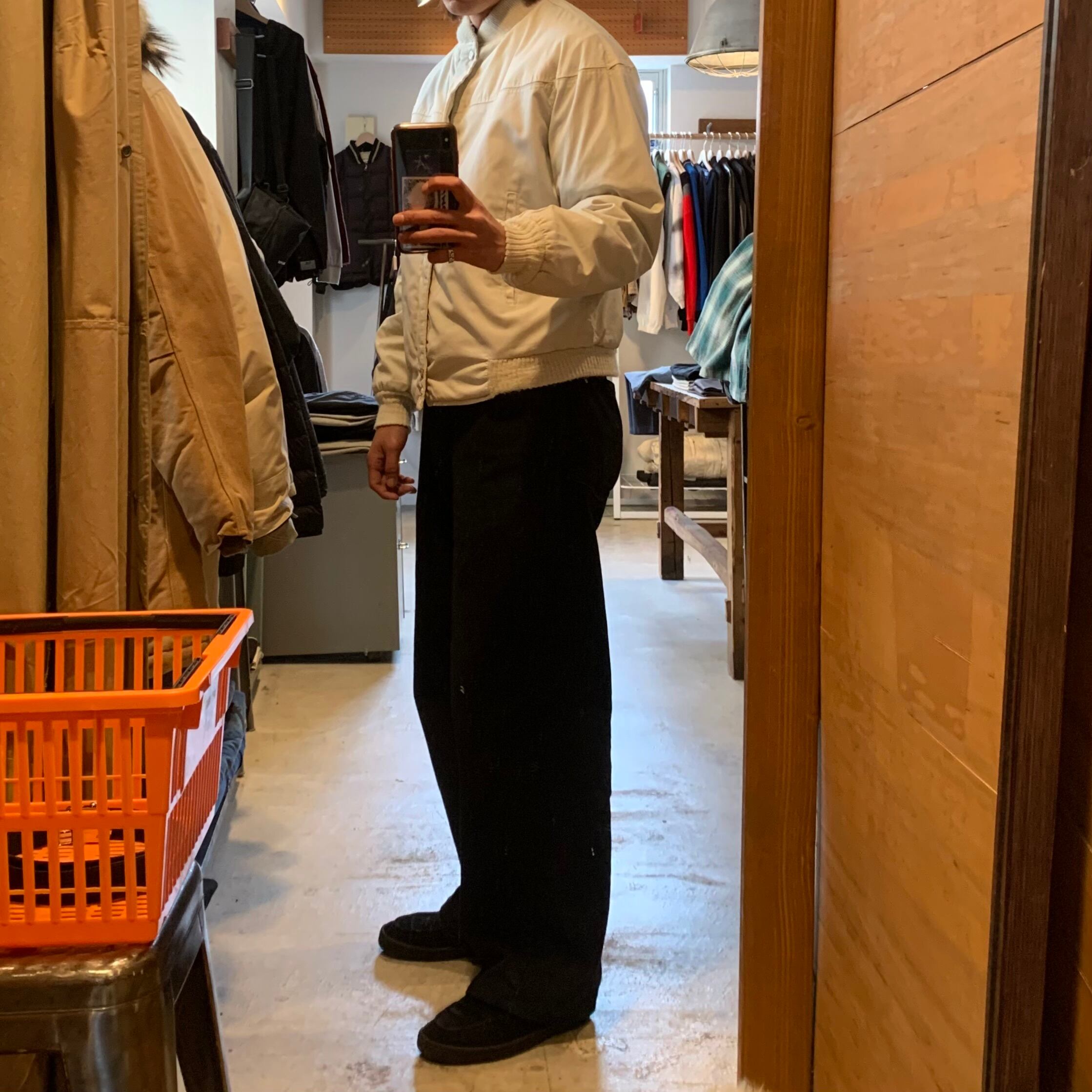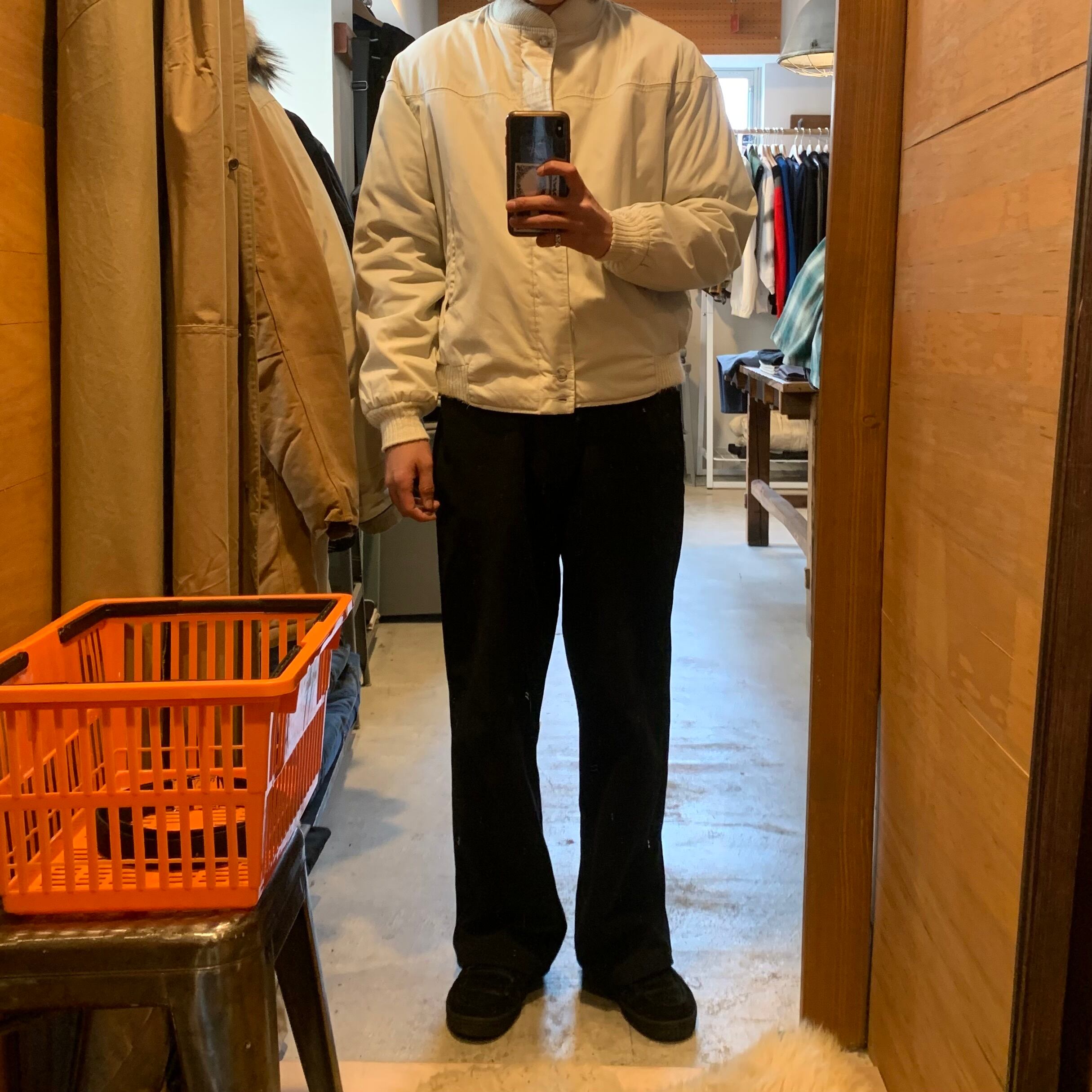•SIZE 40 肩幅 58cm 袖丈 59cm 身幅 61cm 着丈 61cm 着用者170cm •MATERIAL COTTON POLYESTER •COLOR オフホワイト •CONDITION 背面リブに汚れあり。 写真にてご確認下さい。 gar1816