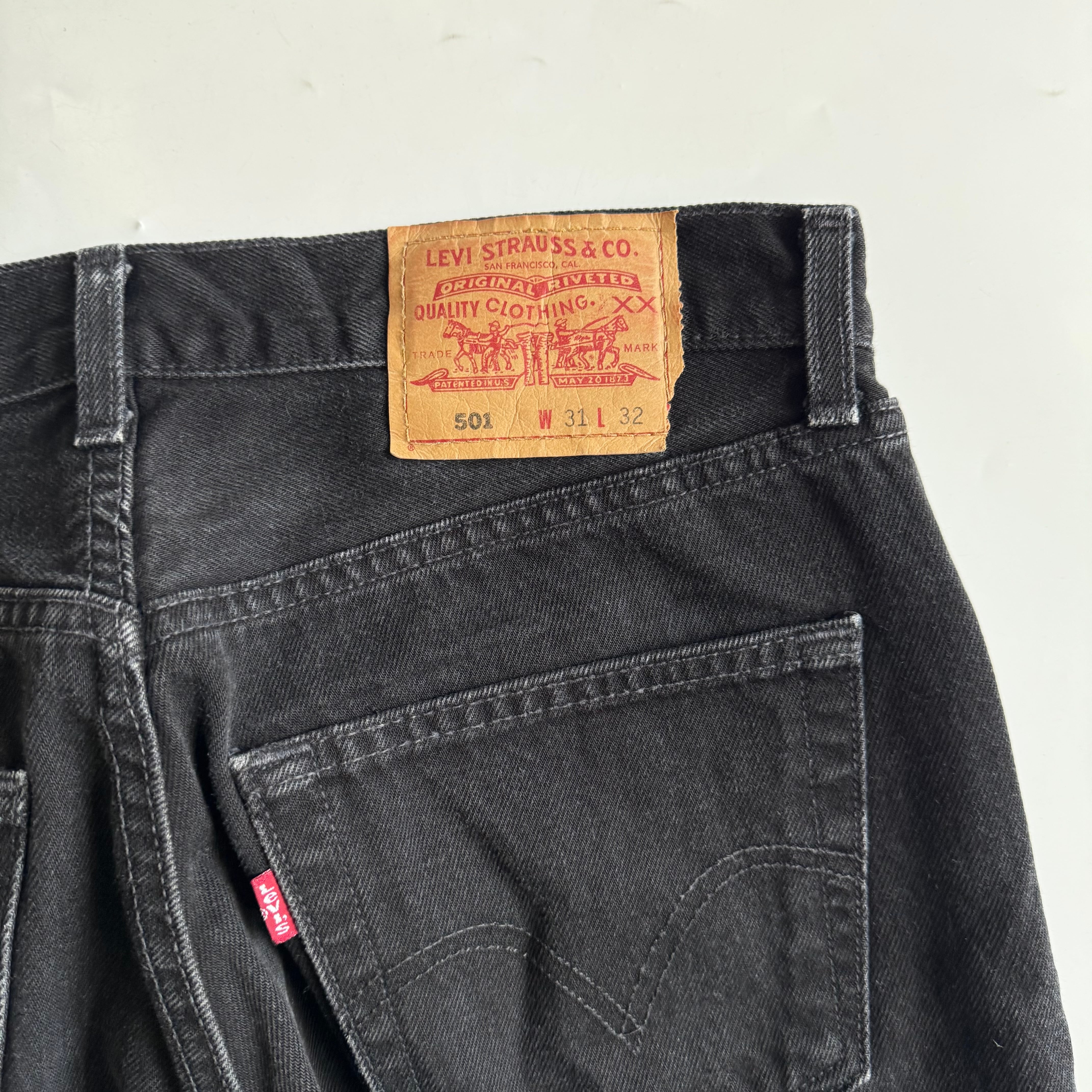 •SIZE W31 L30 ウエスト 80cm 股上 29cm 股下 76.5cm わたり 30cm 裾幅 20.5cm •MATERIAL COTTON 100% •COLOR ブラック •CONDITION 使用感、カットオフ。 写真にてご確認下さい。 gar1880
