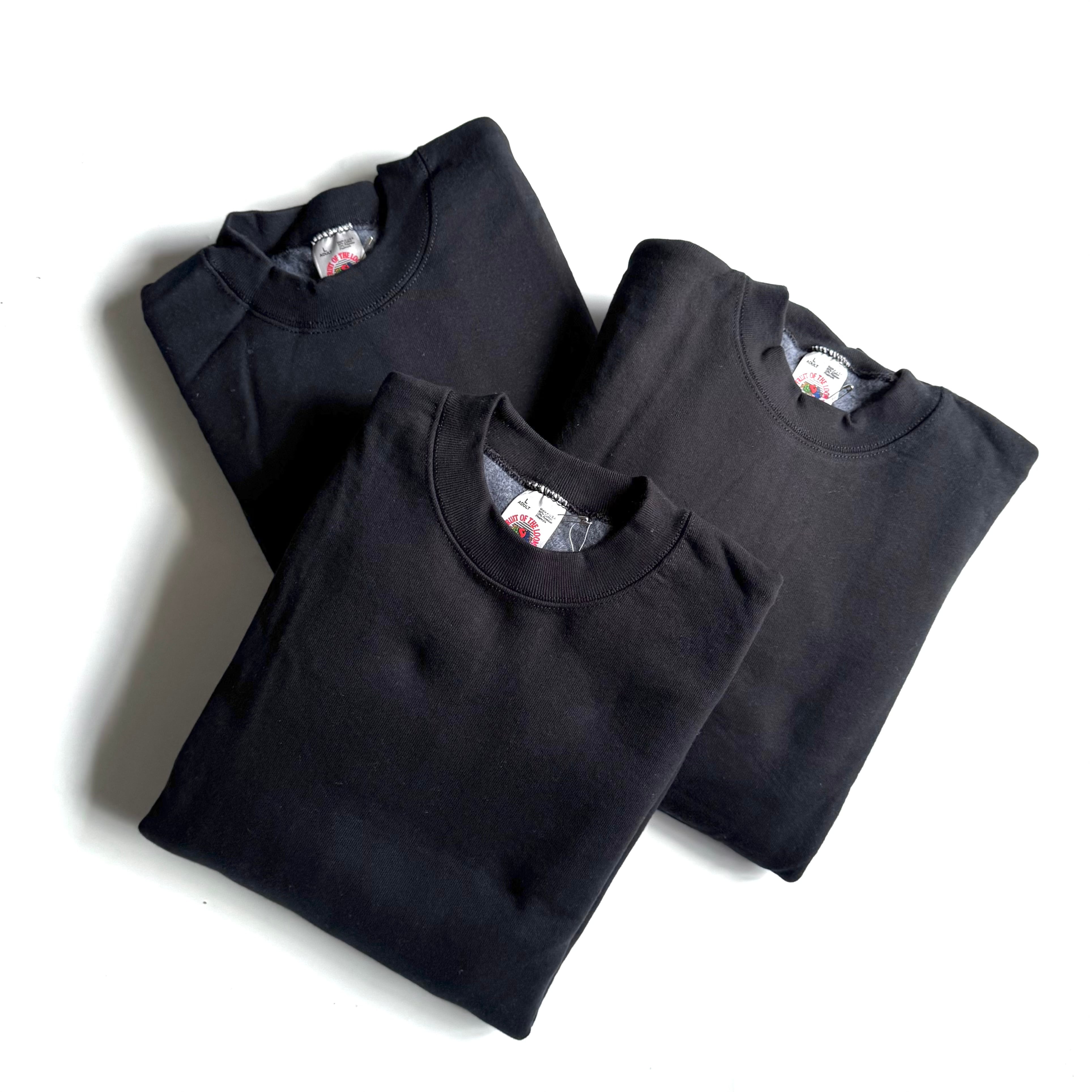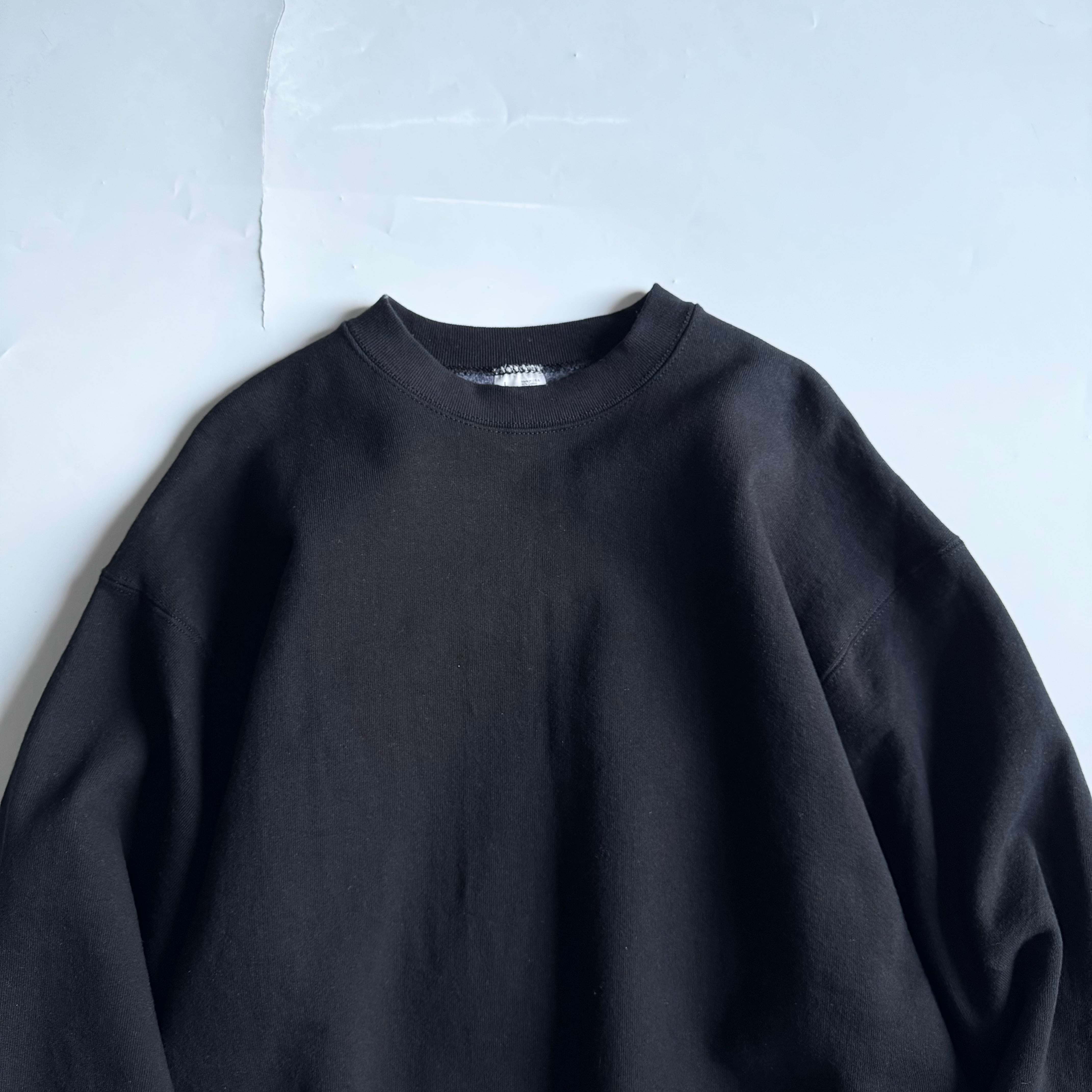 90年代アメリカ製のデッドストック コットン多めのガシガシ系 タフにどうぞ •SIZE XL 肩幅 62cm 袖丈 67.5cm 身幅 66cm 着丈 76cm 175cm着用 ワンウォッシュ後 肩幅 61.5cm 袖丈 63.5cm 身幅 65cm 着丈 73cm •MATERIAL COTTON 90% POLYESTER 10% •COLOR ブラック •CONDITION デッドストック。