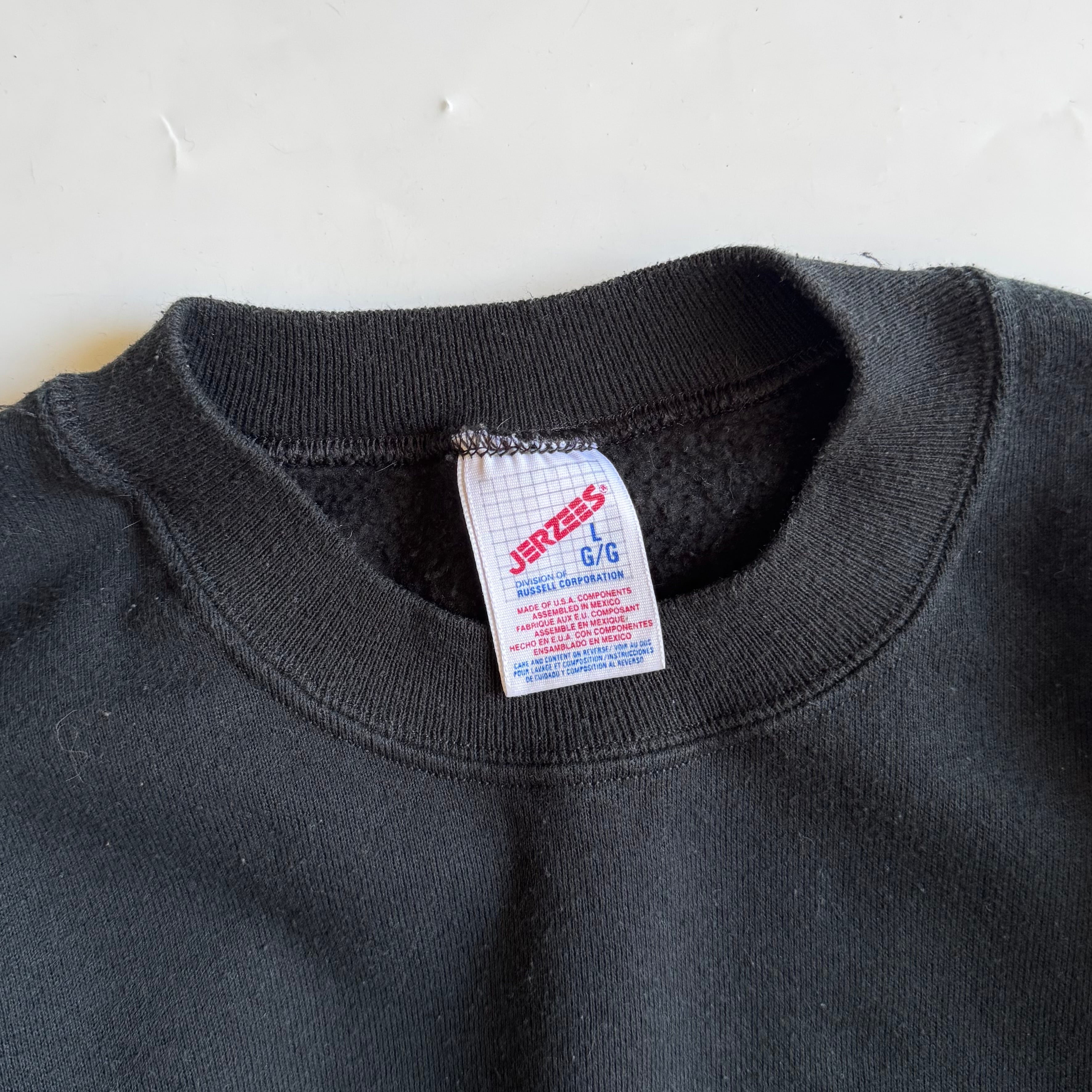 恐らく前者がセルフで開けた片方だけサムホールあり。古着の面白さ◎ •SIZE L 肩幅 57cm 袖丈 60cm 身幅 56cm 着丈 67cm 175cm着用 •MATERIAL COTTON POLYESTER •COLOR ブラック •CONDITION 使用感、袖にダメージ。 写真にてご確認下さい。 ya5746